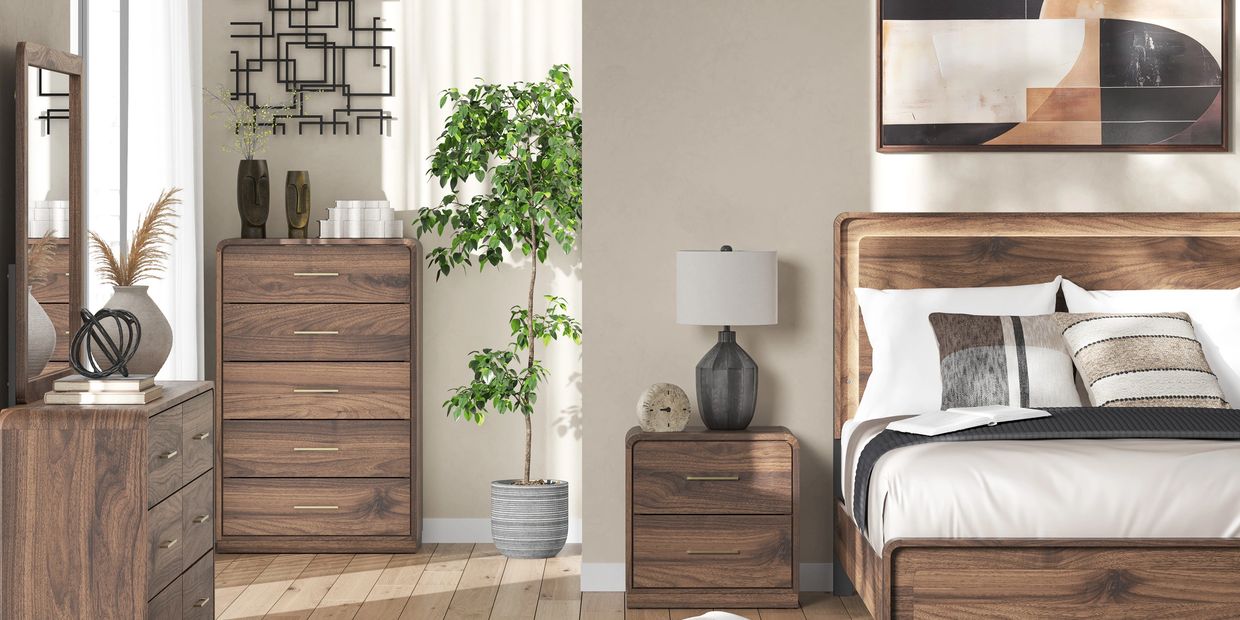 Grace your restful retreat with an added dose of refinement. This dresser showcases a stunning rich brown wood tone, with sleek drawer pulls for an added layer of luxury. A rounded top softens the silhouette, elevating the look. It’s curated, contemporary and utterly chic.